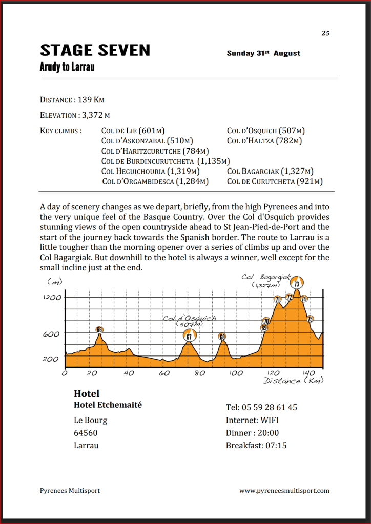 Arudy – Larrau (distance 139km / elevation gain 3,372m)