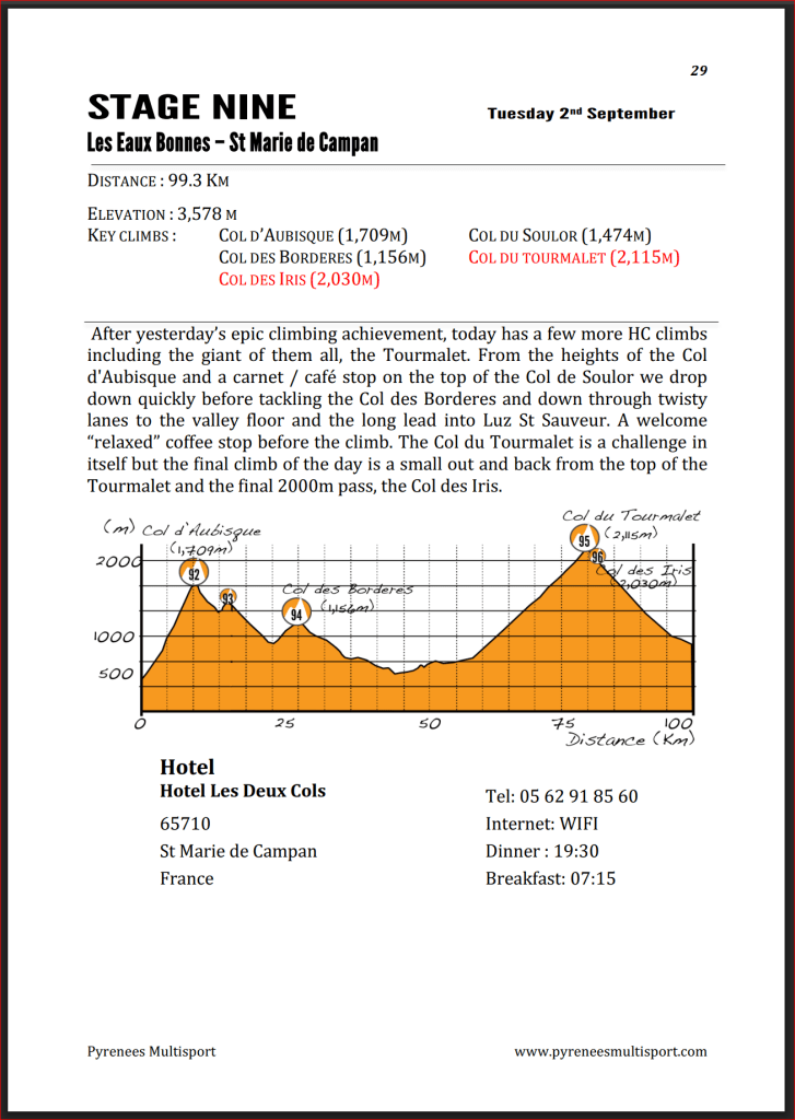 Les Eaux Bonnes – St. Marie de Campan (distance 99km / elevation gain 3,578m)